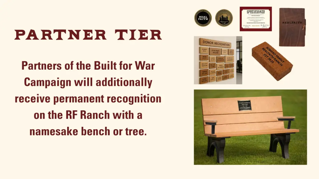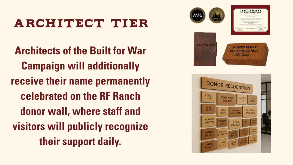 All Supporter benefits + Family name on Brick placed in Headquarters